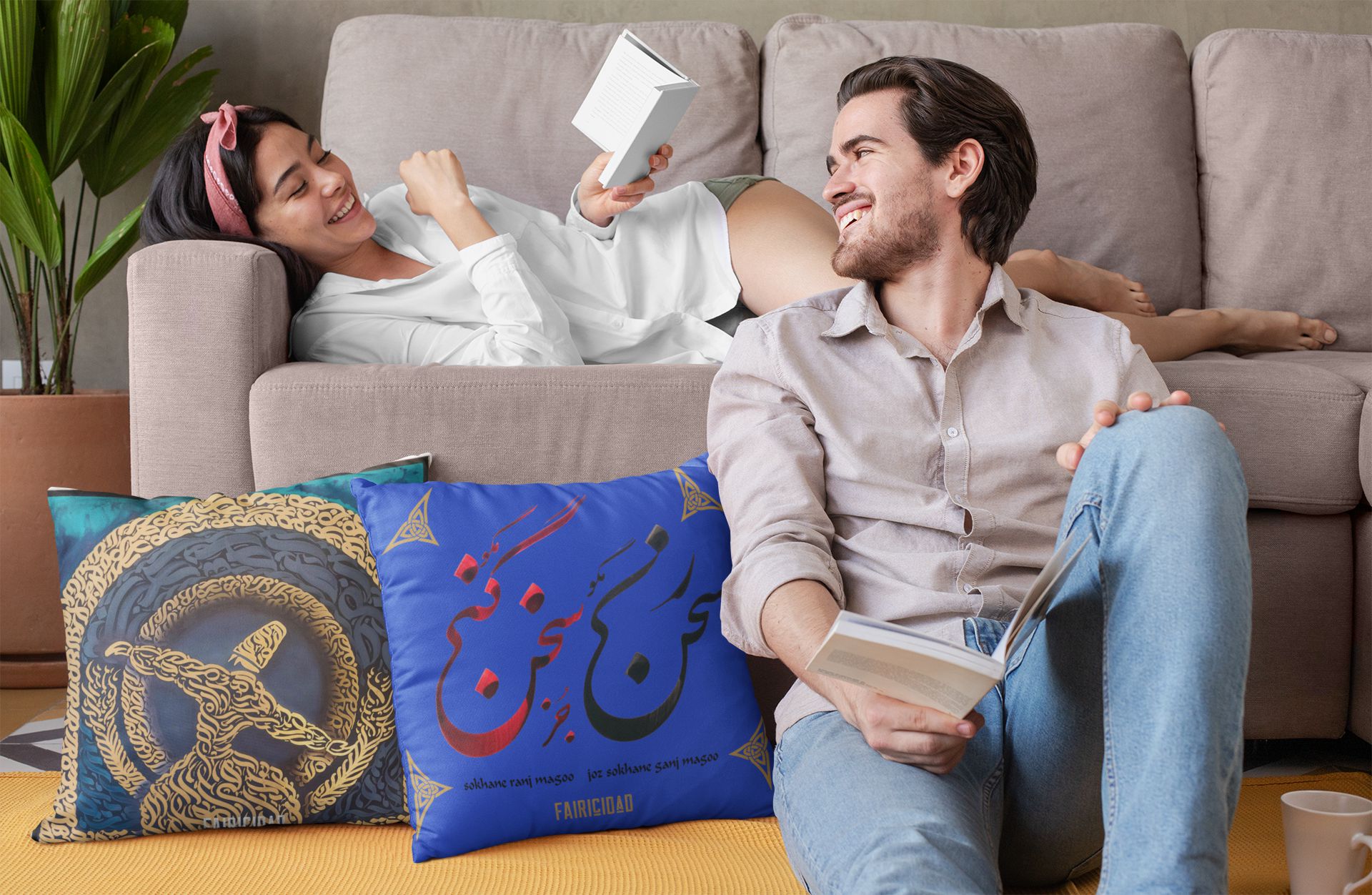 Das Gedicht “Sokhane ranj magoo joz sokhane ganj magoo” ist von Molana “Rumi” (gilt als einer der bedeutendsten Dichter und Mystiker im Mittelalter in Persien) und bedeutet in etwa: “Sprich nicht über Leid und Leid des Lebens, erzähl mir von den Schätzen des Lebens”